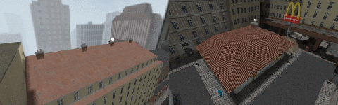 Jemand befindet sich im Imbiss - Jemand versteckt sich hinter dem Schornstein.