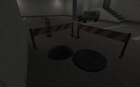 Besonderheit: Eine Baulampe in der Tiefgarage blinkt wenn sich ein Spieler in der Kanalisation aufhält