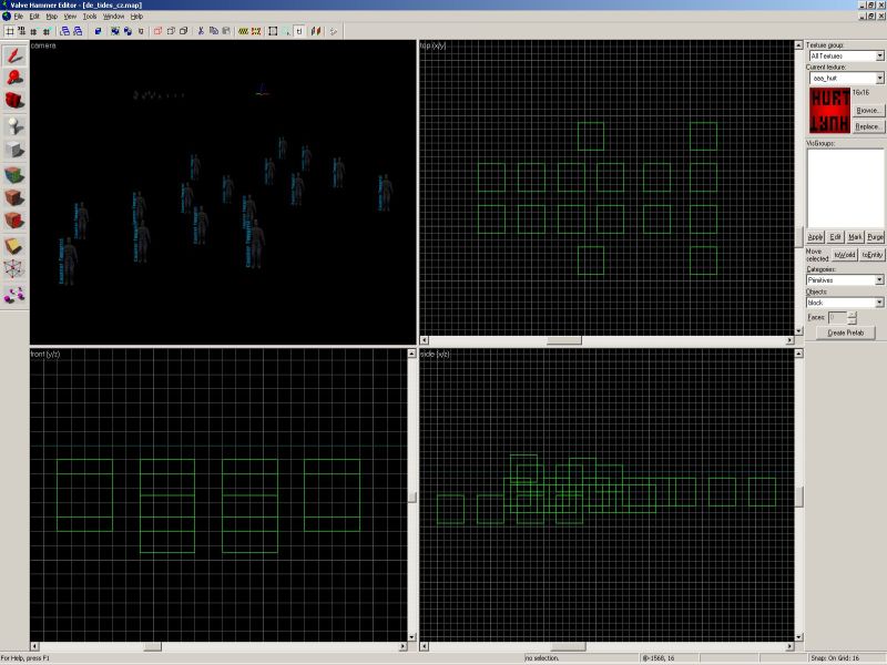 Für eine Half-Life-Map sollten mindestens 32 Spawnpunkte gesetzt werden. Beim Spiel ''Counter-Strike 1.6'' sind es 16 für CTs (info_player_start) und 16 für Ts (info_player_deathmatch).