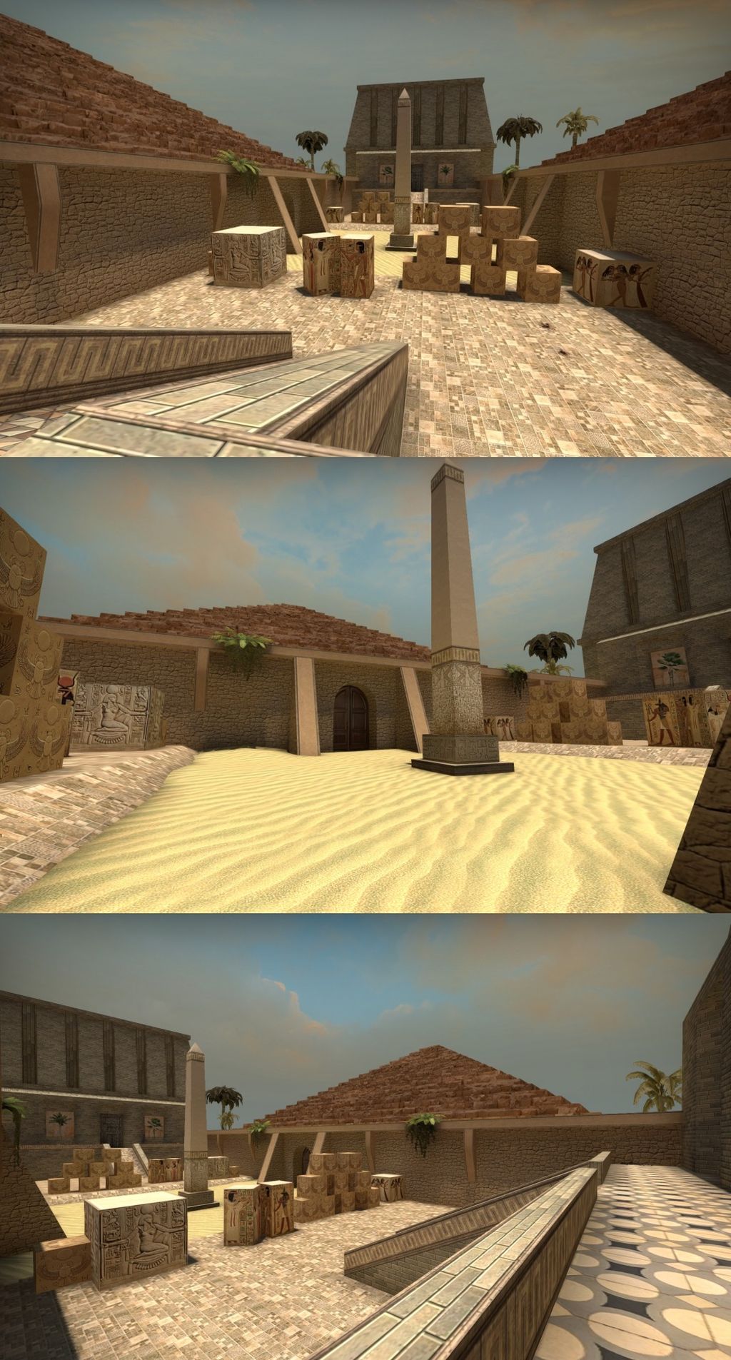 Eine kleine Fun-Map im ägyptischen Style. Beide Gegner stehen sich unmittelbar gegenüber. Der Aufbau der Map ist gespiegelt, damit jedes Team gleiche Chancen hat.