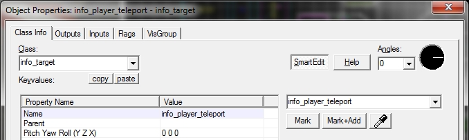 8. Erstelle ein ''trigger_once'' an der selben Stelle, wo auch das info_target ''info_player_teleport'' ist.