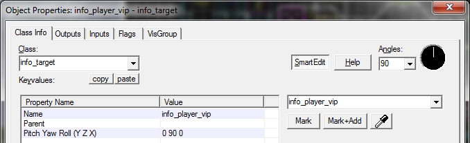 Der V.I.P. schaut nach dem Spawnen in die Richtung des eingestellten Wertes "Yaw".