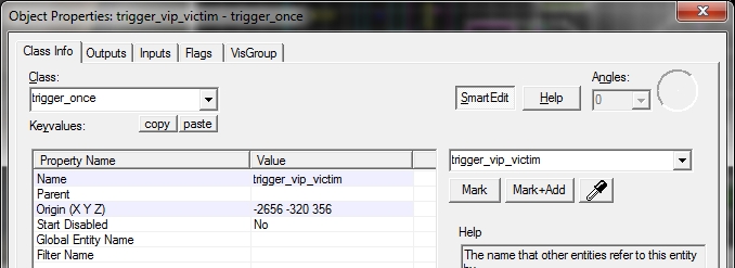 10. Erstelle ein ''trigger_once'' an der selben Stelle, wo auch das info_target ''info_player_victim'' ist.